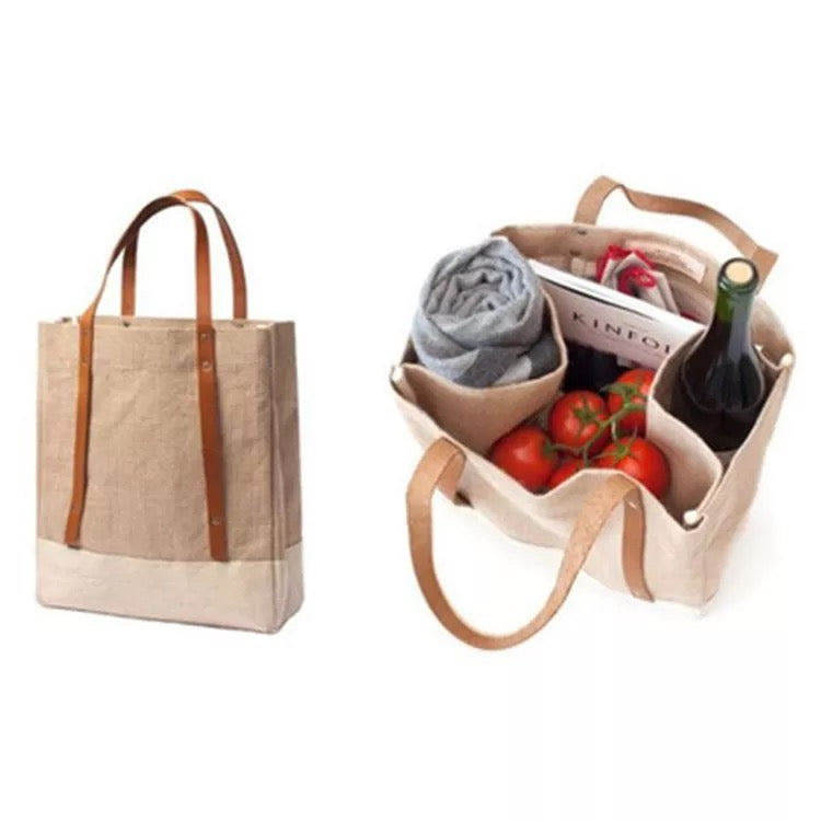 A Jute Tote with a wipe clean interior. Leather Handles and two "wine bottle" compartments. This bag is great for a picnic, farmer's market, or a trip to the gym or yoga studio. Choose a tassel color to accompany the oyster shell charm and complete the look.